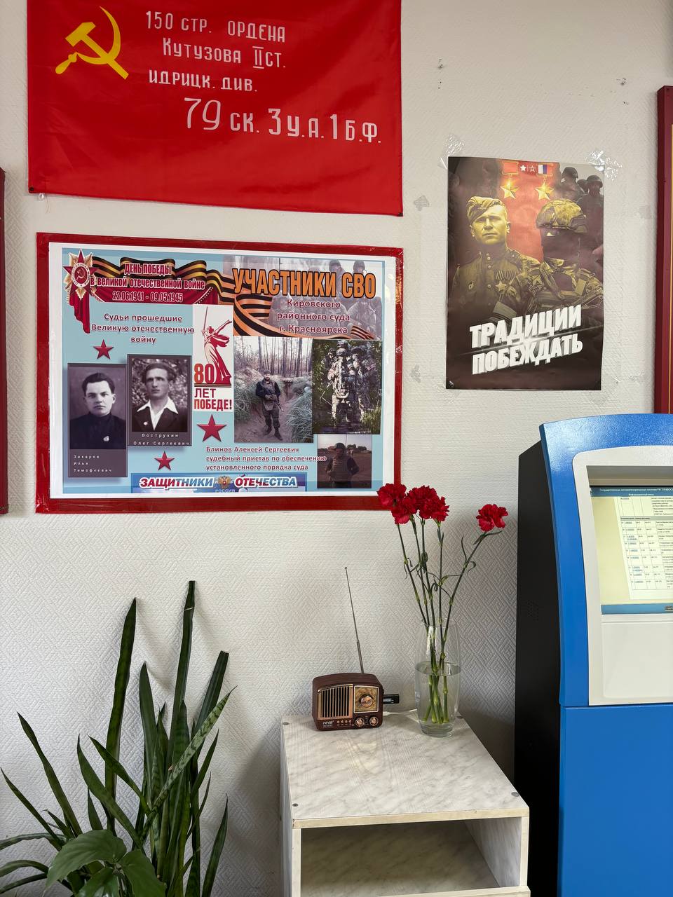 В Кировском районном суде г. Красноярска в честь празднования 80-летия Победы в Великой Отечественной войне в холле суда будут звучать песни военных лет